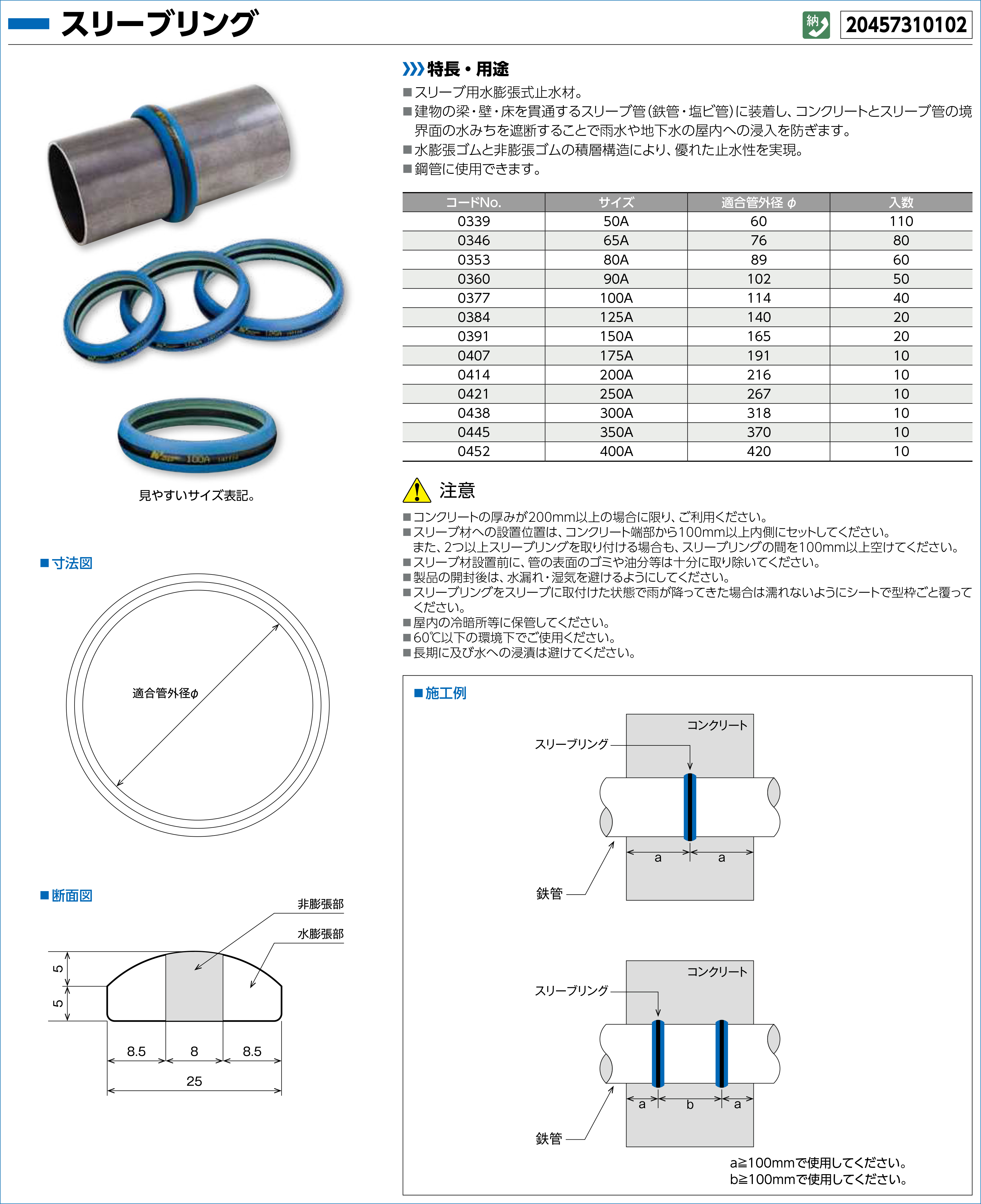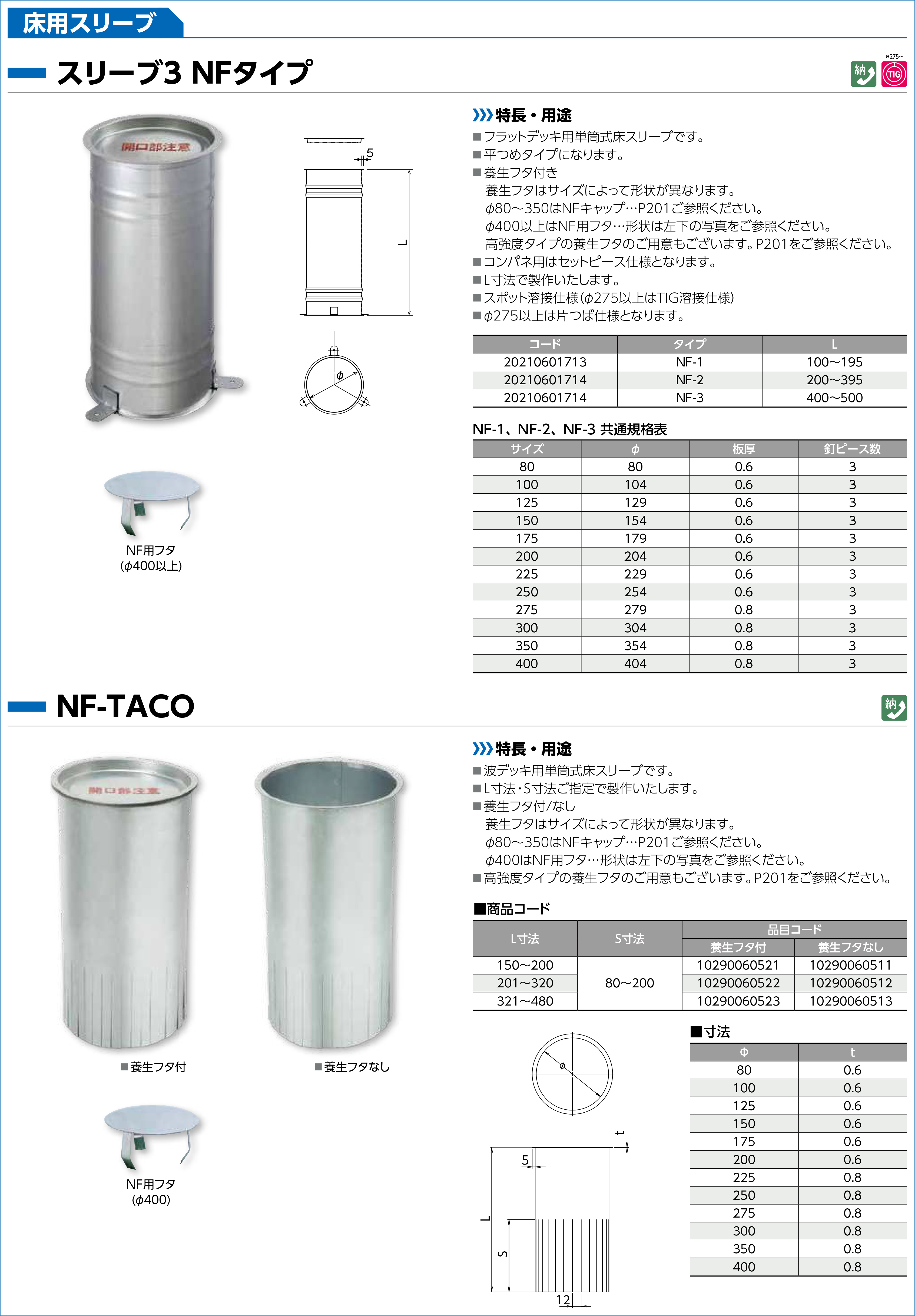 空調・衛生・電気工事における配管を、梁・壁・床などに貫通させる場合に、その開口を確保する為の管体です。スリーブに使用される主材質● スリーブ3(伸縮型・単筒型鋼板スリーブ)…亜鉛鋼板製(SGCC)