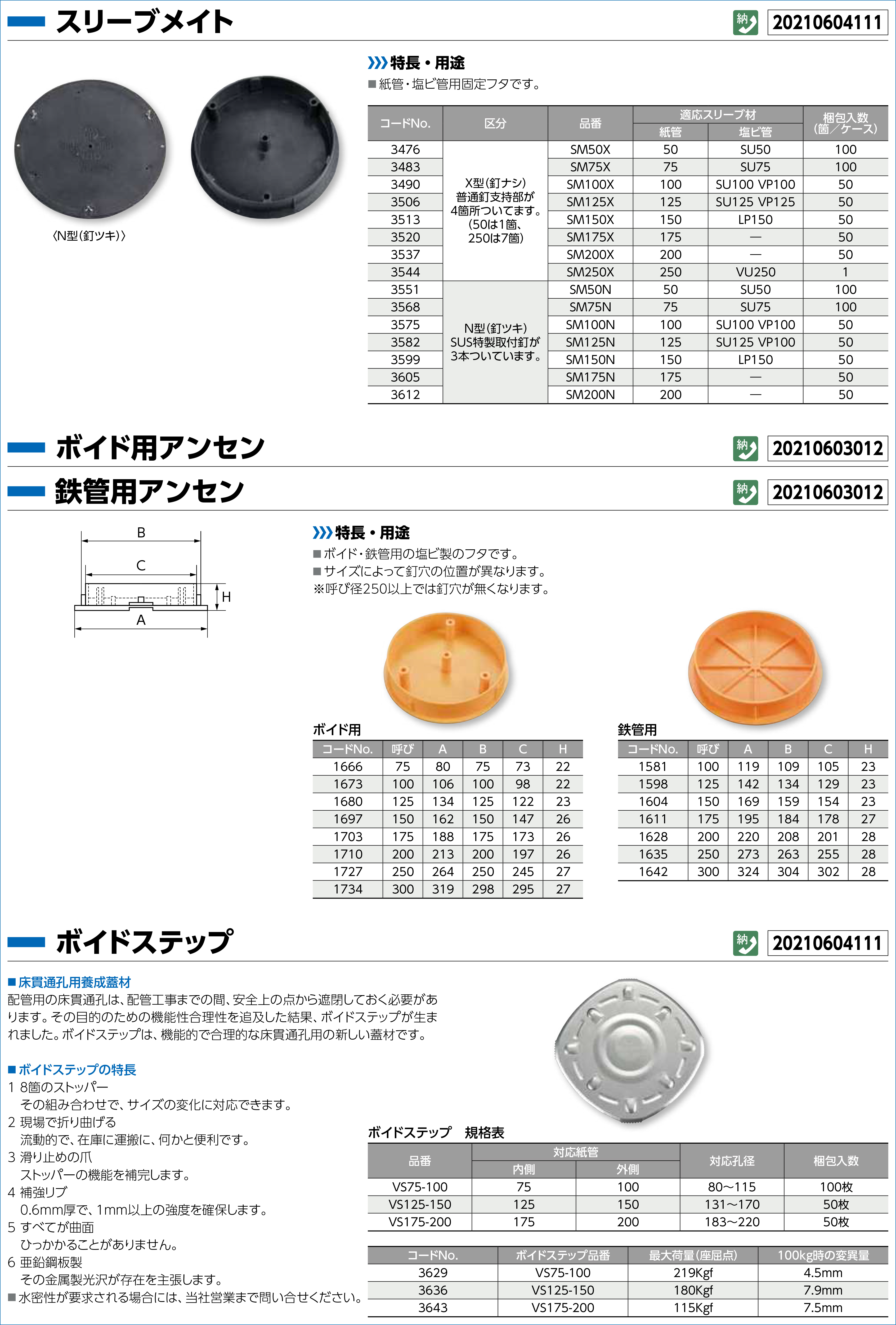 ● 塩ビスリーブ…硬質塩化ビニル管(VU)製(JIS K 6741)