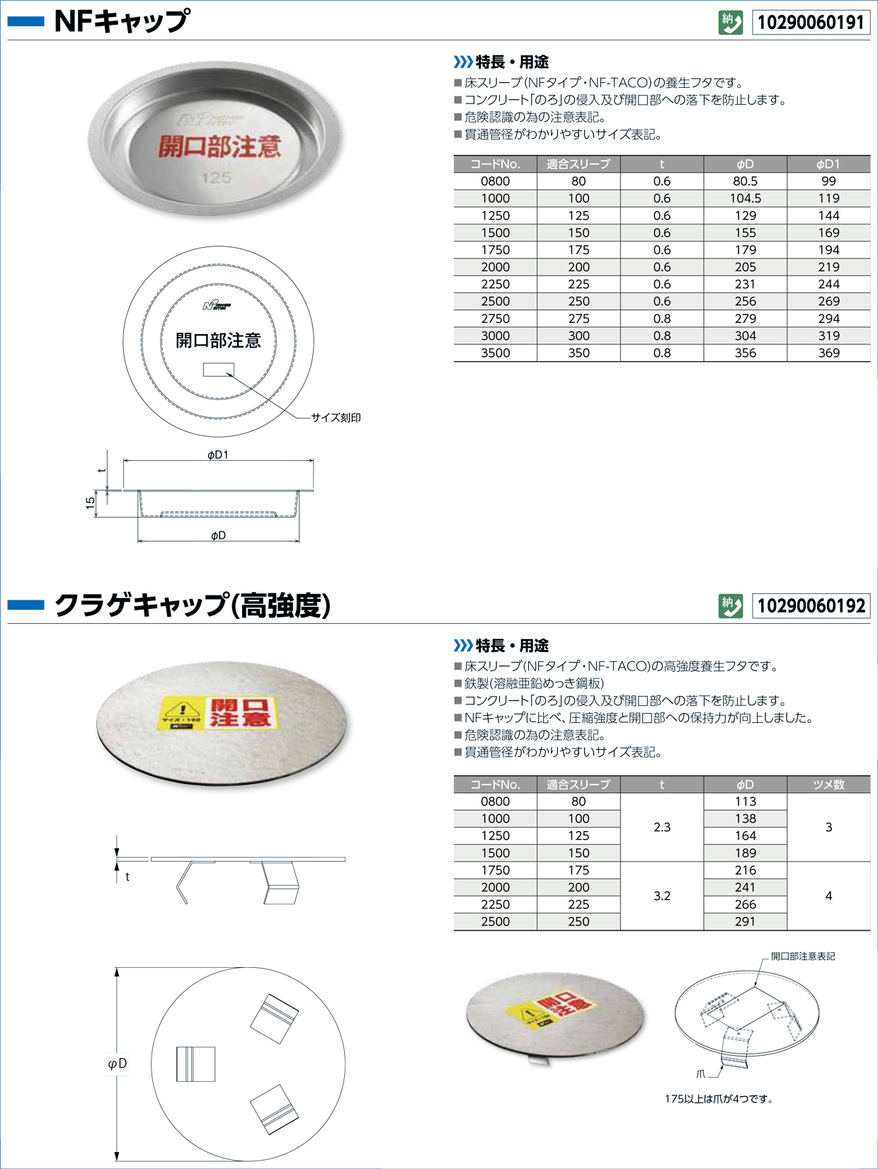 ● 鉄管スリーブ…つば付鉄管製(公共仕様 配管用炭素鋼鋼管/標準仕様 一般構造用炭素鋼鋼管)