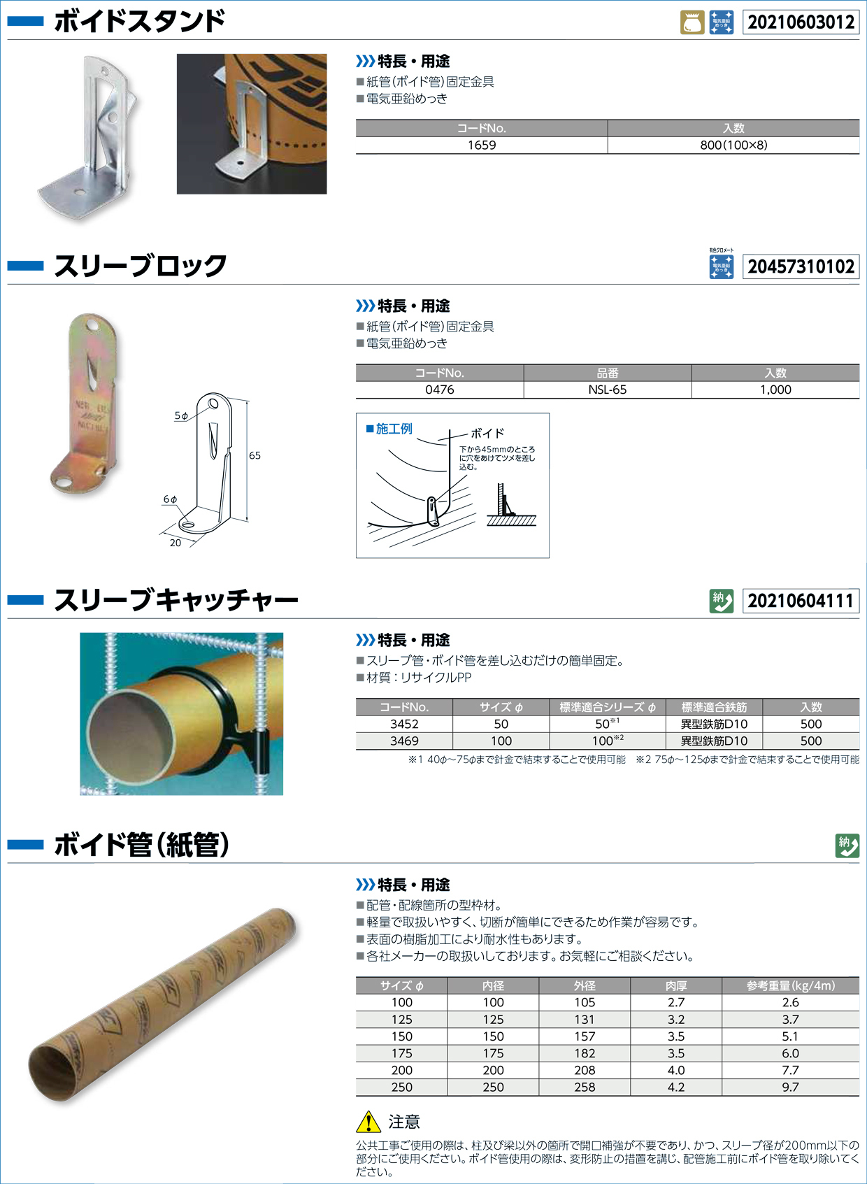 - ボイドスタンド・スリーブロックは、紙管用の取付けつめです。強度を求める場所での使用は避けてください。
