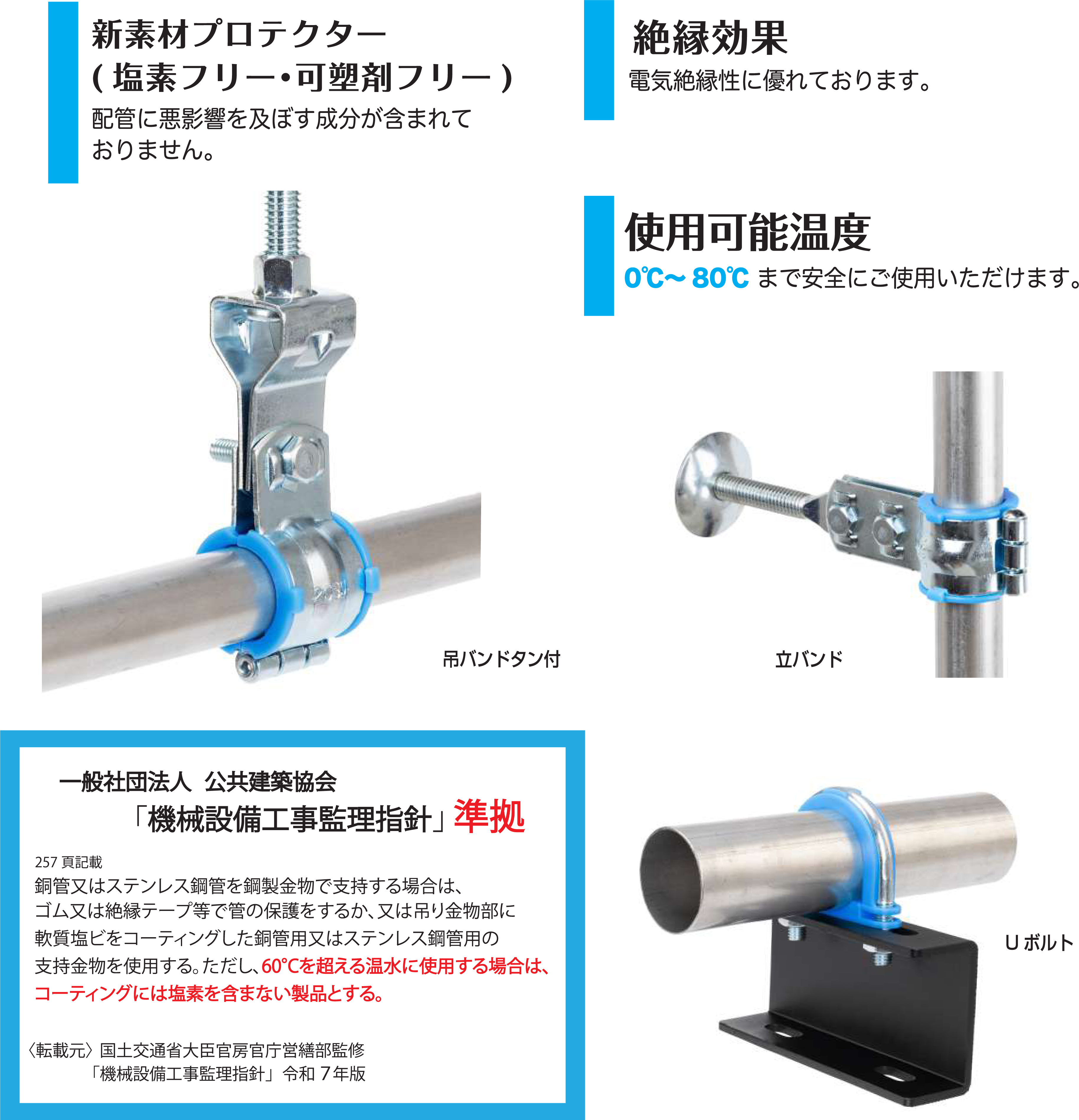 ![]() | [ 特長・用途 ] ■適合管:給水配管用ステンレス鋼管(薄肉/SU) ■使用可能温度:0℃~80℃まで ■鉄製(電気亜鉛めっき) |
