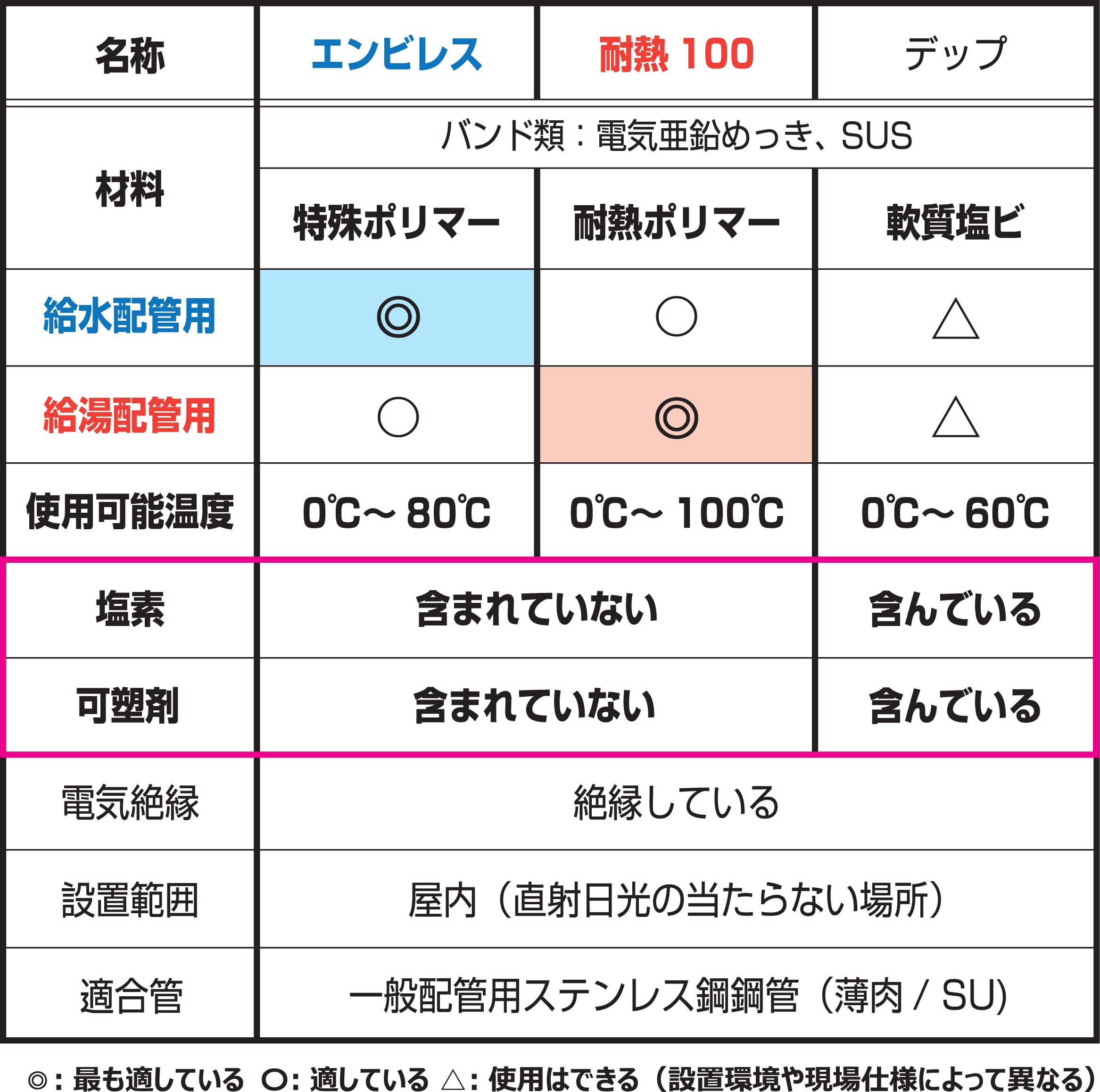 当社では、劣化の主な原因である熱に着眼し、 通常よりも大きな負荷をかけた加速試験を実施し、寿命予測を行っております。 プラスチックやゴムなどの材料は時間経過で徐々に劣化をします。特に熱の負荷が大きいとより早く劣化が進み、配管の腐食のきっかけとなるひび割れ等の問題が発生します。この問題の発生には数十年と長い年月がかかるため、当社では加速試験を実施し製品の安全性を確認しました。 特性表 ![]() |