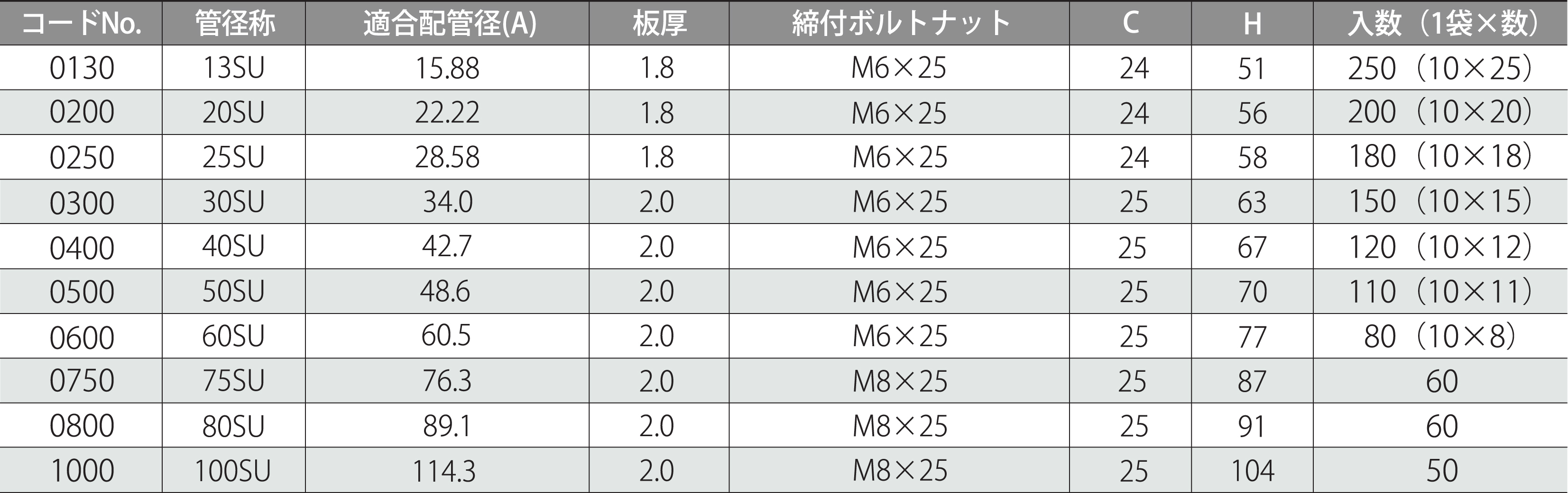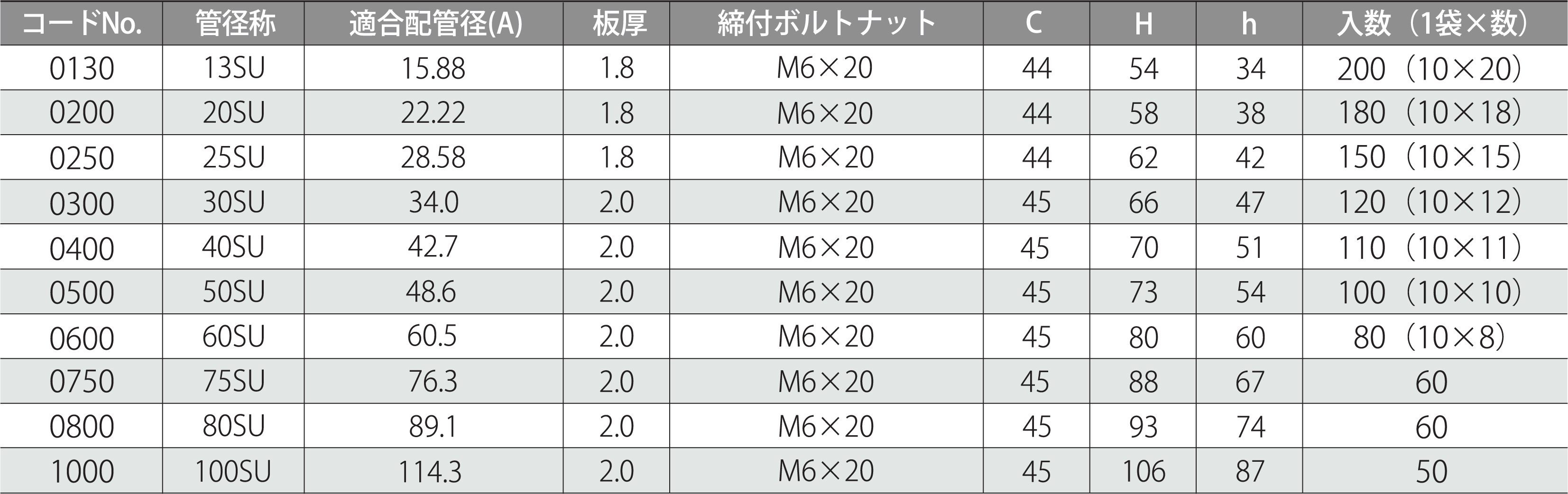 エンビレスシリーズステンレス SU Uボルト 10220070475