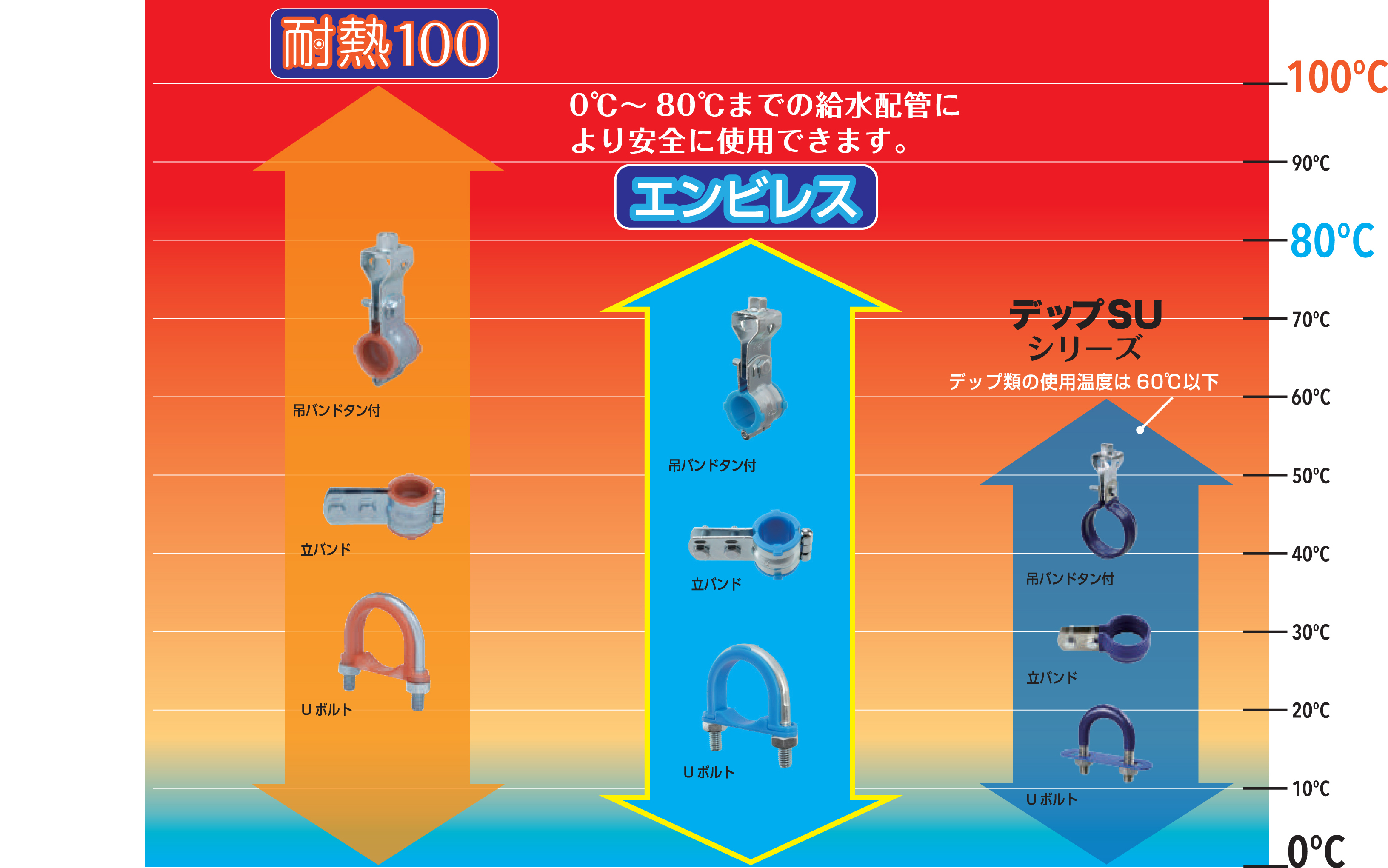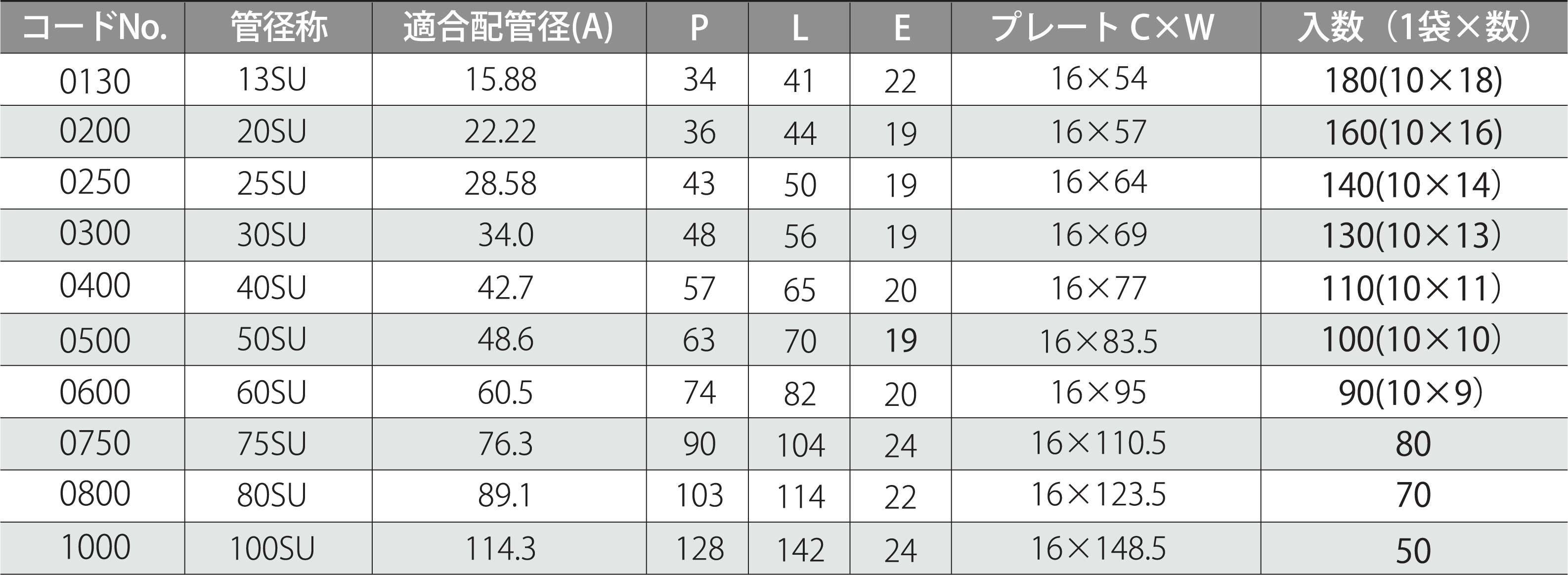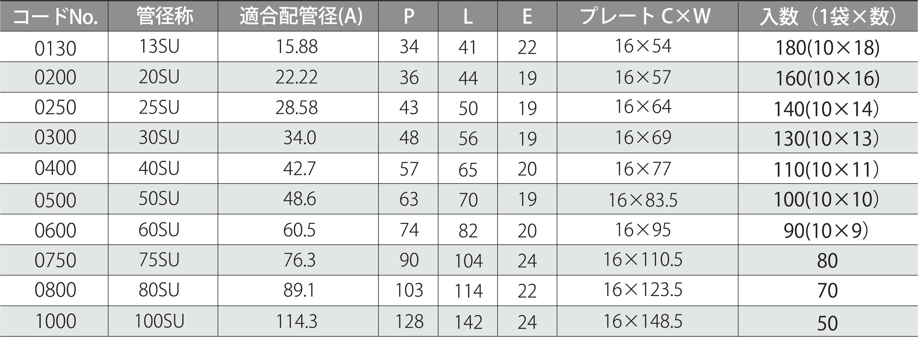 ![]() | [ 特長・用途 ] ■ 適合管:給水配管用ステンレス鋼管(薄肉/SU) ■使用可能温度:0℃~80℃まで ■鉄製(電気亜鉛めっき) |