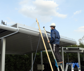 後方支持・両翼型という構造は、使い勝手に優れる一方で、風や地震といった外力に対する合理的な設計が不可欠です。本製品では、建築構造工学の知見を基に、長期運用を前提とした安全性・耐久性・施工精度の最適化を徹底的に検討しました。